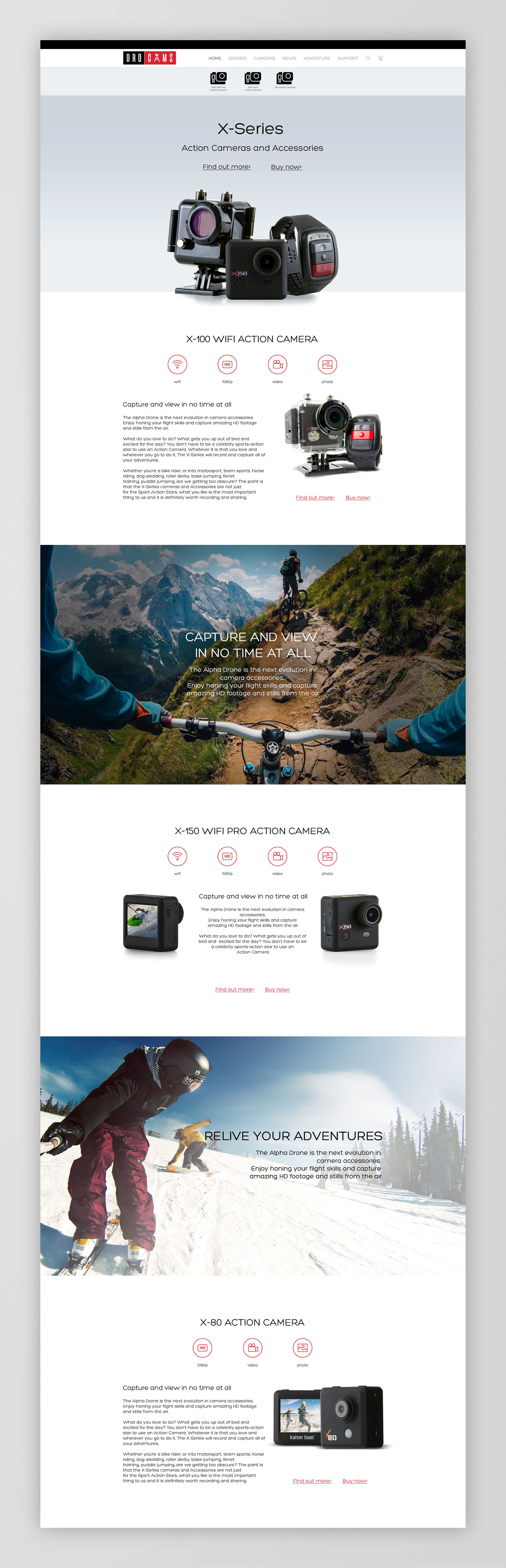 Brief: to design a new eCommerce website concept that would primarily sell Drones and Cameras. This included designing the logo and developing the brand.