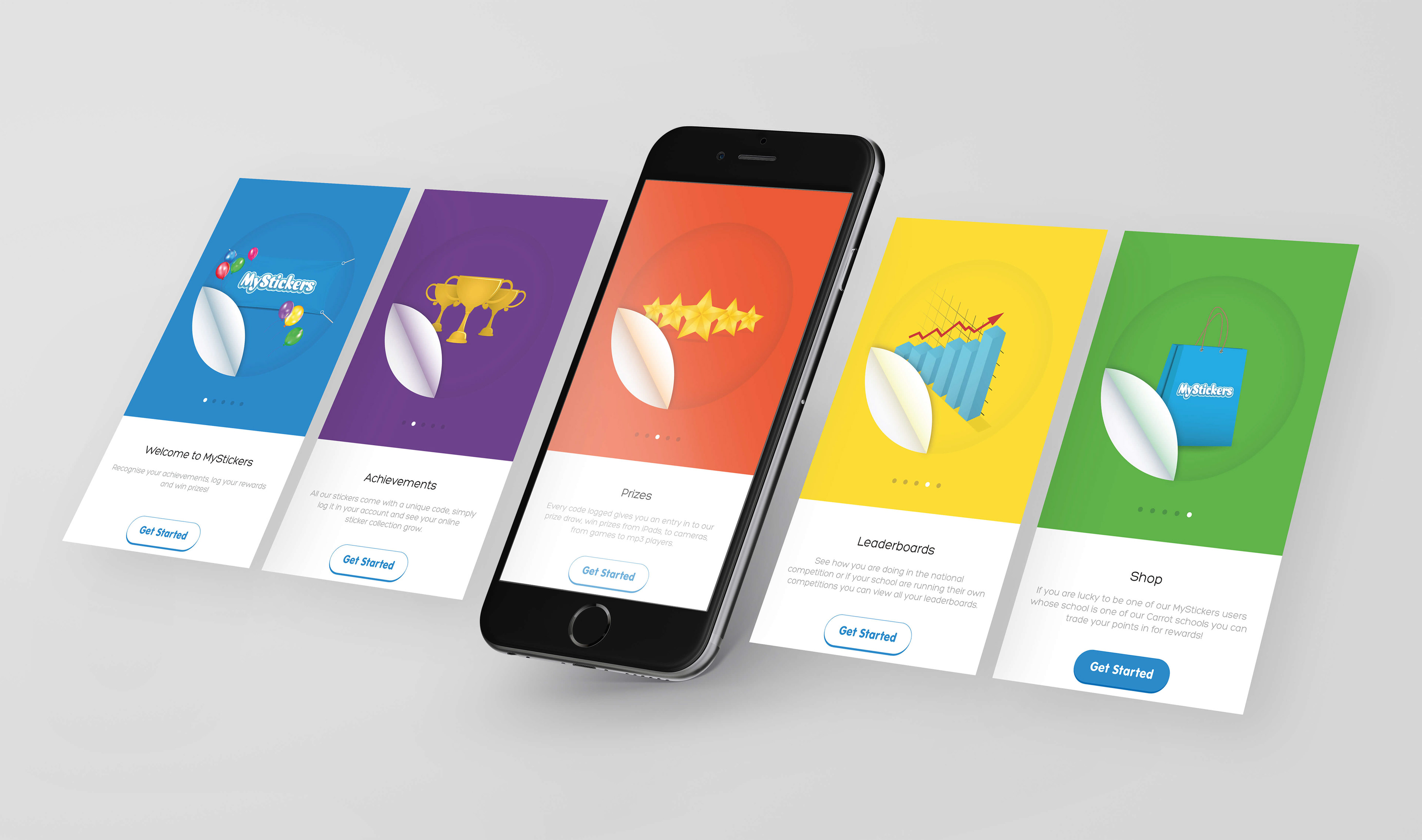 Brief: To redesign the MyStickers app log-in pages with a refreshed look to match the website and to encourage app downloads and new members.